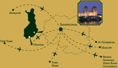 Savonlinna- 通常被称为芬兰最美丽的小镇-自20世纪初以来它的郊外就成为了俄罗斯贵族的度假胜地. 直到今天,一座当地的温泉仍使得人们崇尚着这些传统.小镇边上还有一座18洞的高尔夫球场.您可以选择在Savonlinna购物,或者如果您想要最好的和最广泛的选择-那么就去赫尔辛基吧. Savonlinna一年一度最富盛名的歌剧节在Olavinlinna的中世纪城堡中举行.这个节日是芬兰歌剧界每年最主要的活动,同时它在国际上也有着很重要的影响.城堡全年开放并且它的设施可以出租用来召开商业会议或者私人聚会. 距离Exclusive Island最近的机场距离Savonlinna镇15公里.那里每天都有往返赫尔辛基的飞机.乘坐火车也可以到达Savonlinna, 如果您想乘坐豪华游艇过来, Saimaa运河正好连接着Saimaa湖和芬兰湾,可以通船. 在Exclusive Island上或者其周围, 您也可以,例如, 钓鱼, 打猎比赛, 冲浪和航行.如果您想在天空中驾驶航行器或滑翔机, Savonlinna机场可以作为基地.在冬季,这里有350公里的雪上汽车轨道和大约60公里的滑冰标志线. |